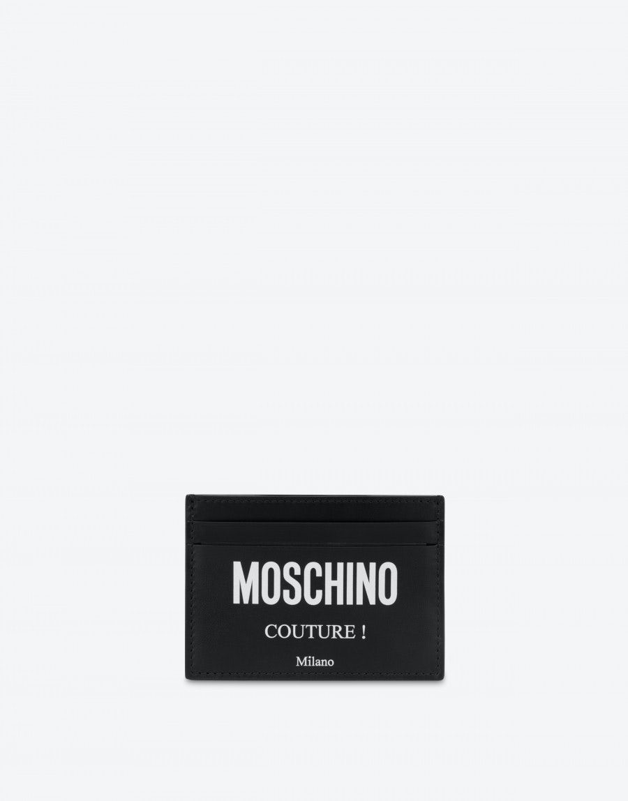 Soft calf leather card case with the iconic Moschino Couture logo printed on the front. - Contrasting logo print - Lined interior pockets - Large note pocket - Four slit pockets - Eight card pockets Fabric : 100% Calfskin Code: 192Z1A810380012555 Size - Width : 11 cm - Height : 7.5 cm