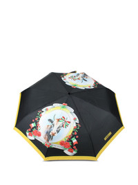 cow-print umbrella Highlights - Black - Floral graphics - Cow illustration - Yellow trim - Logo detailing - Manual opening mechanism Imported Composition Polyester 100%