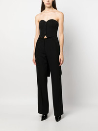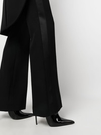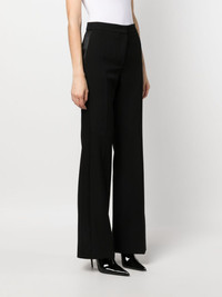 high-rise straight-leg trousers Crafted from soft virgin wool, these trousers from Moschino are cut for a classic straight fit and feature a refined pressed crease. Highlights - Black - Virgin wool - Belt loops - Contrasting panel detail - Pressed crease - High-waisted - Wide leg - Concealed front fastening - Two rear welt pockets Made in Italy Composition Outer: Virgin Wool 100%, Polyester 100% Lining: Cupro 100%, Acetate 60% SIZE & FIT Model measurements Height 5 ft 11 in(1.8 m) Bust/Chest 31.49 in(80 cm) Hips 36.22 in(92 cm) Waist 25.59 in(65 cm) FittingInformation Designed for a straight-leg fit, these trousers allow for a close fit at the waist and an unrestricted, comfortable fit over the leg Made from a midweight non-stretch fabric This piece fits true to size – take your usual size