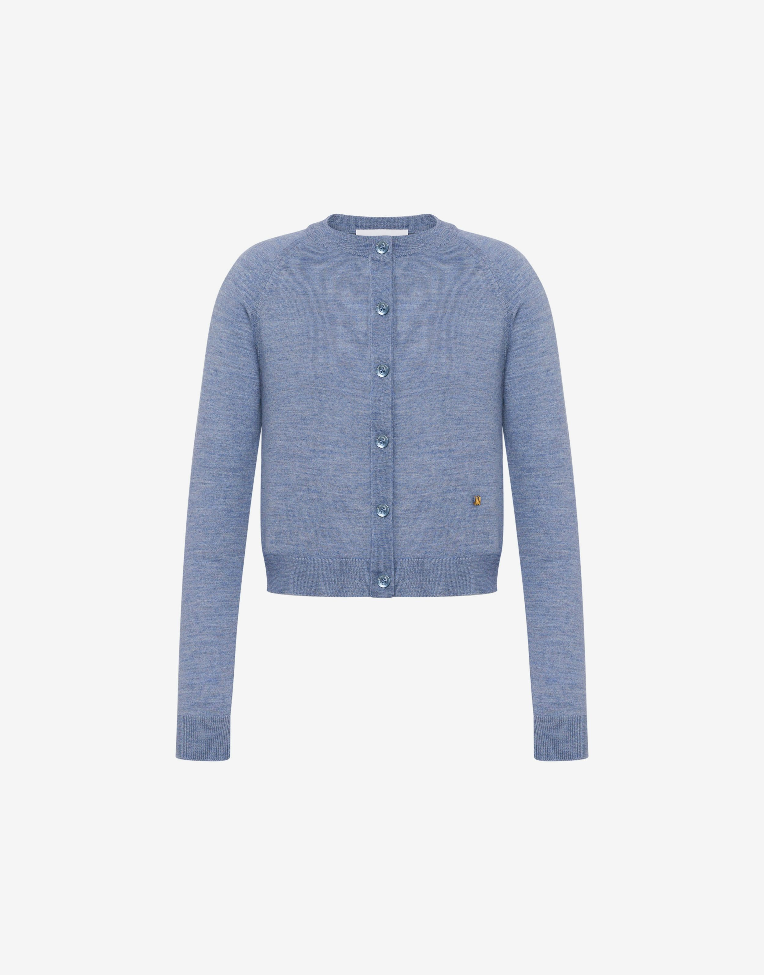 SHORT CARDIGAN IN ULTRAFINE WOOL AND SILK WITH SMALL GOLD-PLATED MOSCHINO LETTER M. REGULAR FIT METAL LETTER M NECKLINE BUTTON FRONT CLOSURE FABRIC: 70% PURE WOOL, 30% SILK CODE: AEF251E 093205010307 FIT MODEL BUST SIZE: 80 CM MODEL HEIGHT: 180 CM MODEL HIPS: 89 CM MODEL SIZE: 40 CM MODEL WAIST: 60 CM
