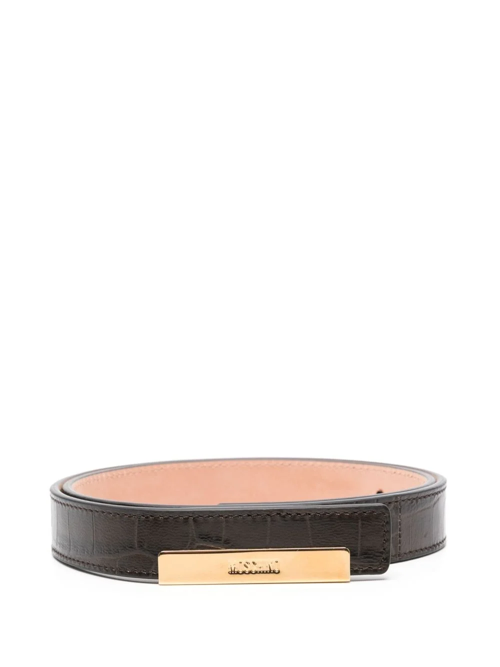 leather belt Highlights - Chocolate brown - Pin-buckle fastening - Logo-buckle detail - Pre-drilled holes - Adjustable fit Made in Italy Composition Calf Leather 100% SIZE & FIT Measurement Minimum Length 29.92 in(76 cm) TOTAL LENGTH 36.22 in(92 cm) WIDTH 0.78 in(2 cm)