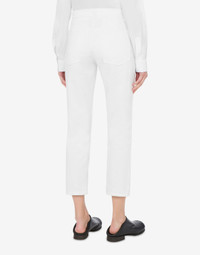 CROPPED FIVE-POCKET COTTON BULL TROUSERS WITH JACQUARD LOGO EMBROIDERED ON THE SMALL FRONT POCKET. REGULAR FIT REGULAR WAIST THREE FRONT POCKETS BELT LOOPS AT THE WAIST FRONT ZIP AND BUTTON CLOSURE TWO BACK POCKETS FABRIC: 100% COTTON CODE: AEF251E 032305270001