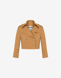 CROPPED DOUBLE-BREASTED JACKET IN COTTON AND NYLON GABARDINE WITH GOLD-PLATED SAFETY PIN FEATURING A RED HEART. THREE-QUARTER SLEEVES BUTTONED SLEEVE ENDS FRONT BUTTON FASTENING FABRIC: 68% COTTON, 32% POLYAMIDE CODE: AEF242E 052355210087