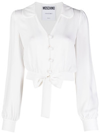 cropped tied-hem silk blouse white silk cropped bib collar tied hem front button fastening V-neck long sleeves Made In Italy Composition Silk 100% SIZE & FIT Model measurements Height 5 ft 11 in(1.8 m) Bust/Chest 31.49 in(80 cm) Hips 36.41 in(92.5 cm) Waist 25.59 in(65 cm) FittingInformation This piece fits true to size. We recommend you get your regular size Designed for a loose fit with a close fit at the waist Made with a lightweight non-stretch fabric Washing instructions Dry Clean Only