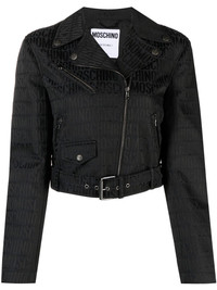 cropped zip-fastening jacket This jacket from Moschino's SS23 collection has an edgy feel through silver-tone hardware detailing, such as stud embellishment, zip details and a belted waist. Made in Italy Composition Outer: Polyester 59%, Cotton 41% Lining: Viscose 100% SIZE & FIT Model measurements Height 5 ft 10 in(1.78 m) Bust/Chest 29.92 in(76 cm) Hips 34.64 in(88 cm) Waist 23.62 in(60 cm) FittingInformation This piece fits true to size. We recommend you get your regular size Cut for a slim fit Made with a mid-weight non-stretch fabric