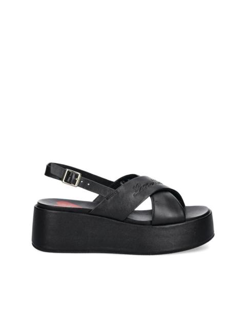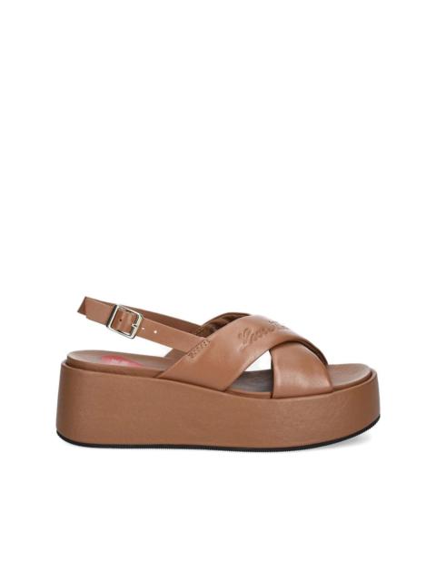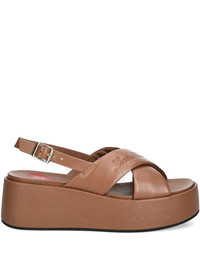 crossover-strap platform sandals Highlights - Brown - Leather - Crossover straps - Slingback buckle fastening - Platform sole - Debossed logo Imported Composition Lining: Leather 100% Sole: Rubber 100% Outer: Leather 100% SIZE & FIT Measurement HEEL 2.36 in(6 cm)