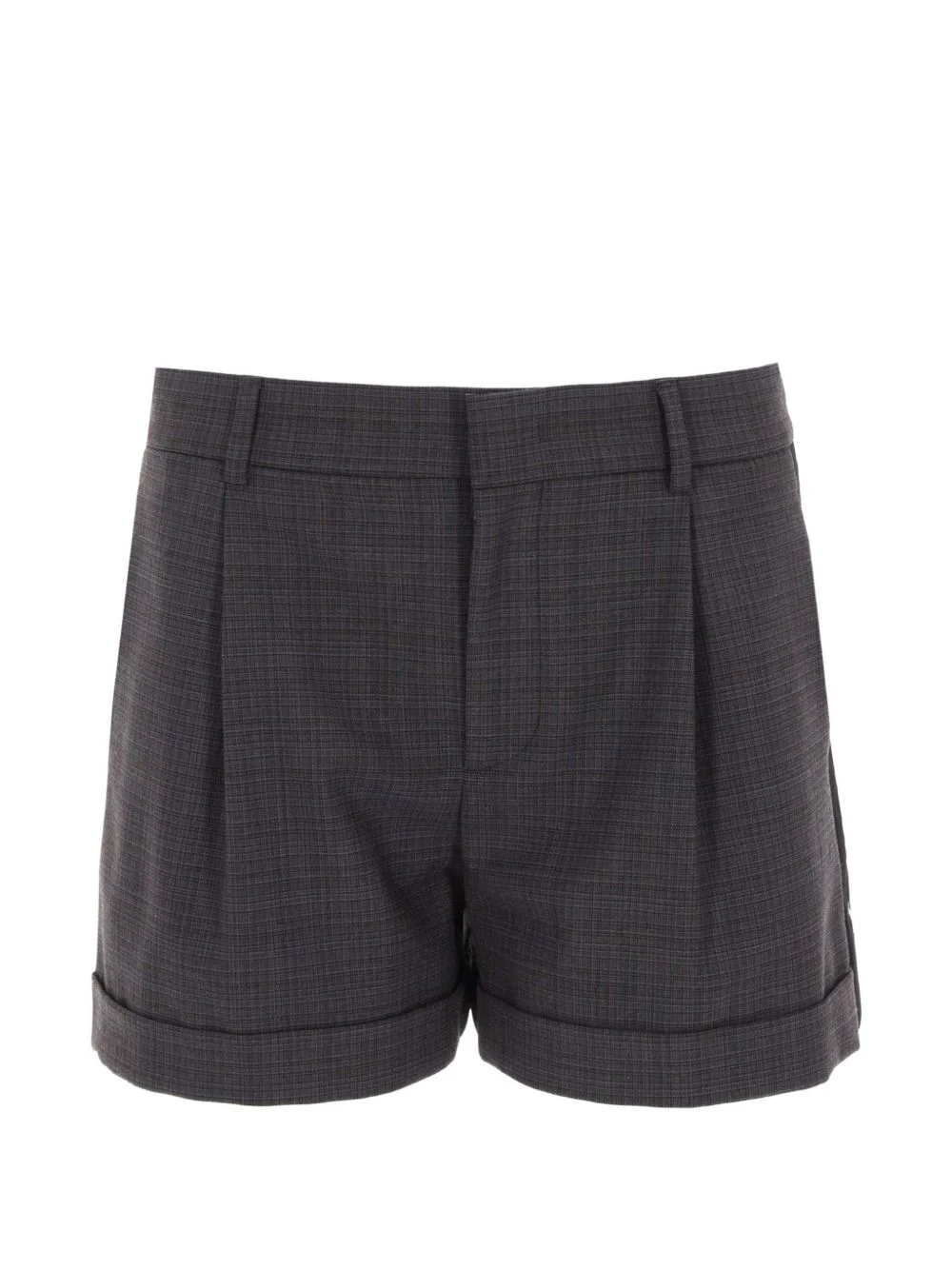 cuffed pleated shorts Highlights - Dark grey - Check pattern - Belt loops - Pleats - Cuffed hem Made in Italy Composition Polyester 53%, Virgin Wool 43%, Spandex/Elastane 4% Washing instructions Read Manufacturer Guidelines
