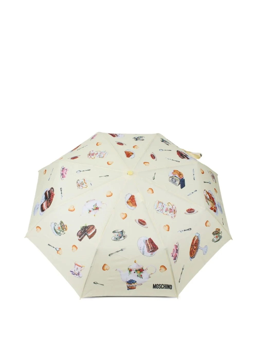 desserts-print umbrella Highlights - Cream background - Cake and tea pot graphic - Durable canopy - Automatic opening mechanism - Matching sleeve - Wrist strap Imported Composition Polyester 100%