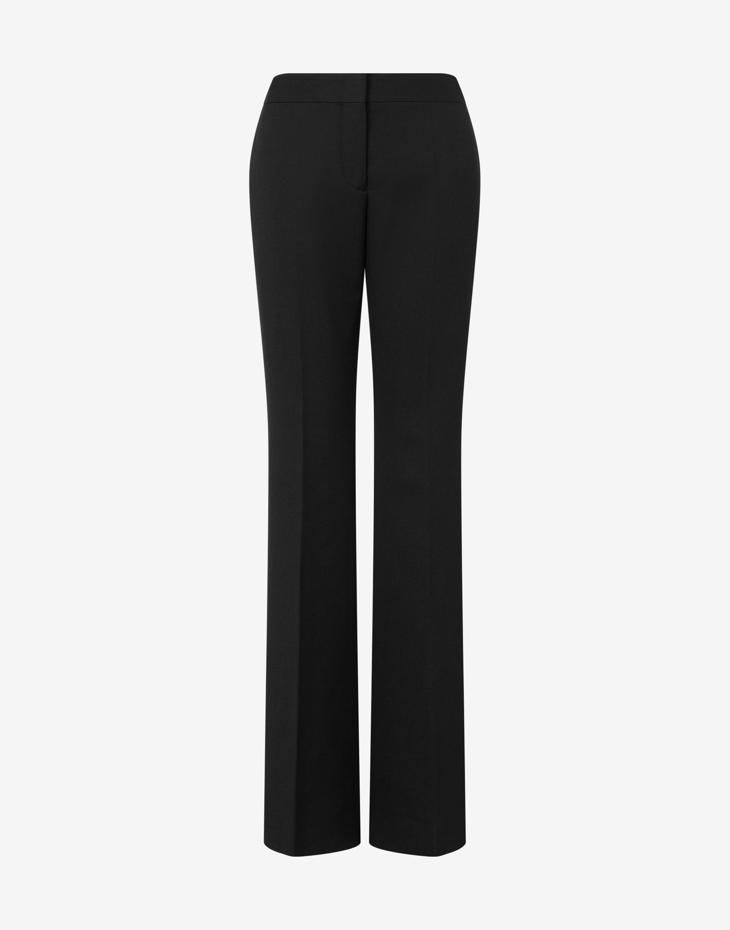 DIAGONAL WOOL AND NYLON BLEND PANTS WITH A TAILORED CUT INSPIRED BY TUXEDOS. A TONAL SATIN BAND IS PRESENT AT THE WAIST. REGULAR FIT REGULAR WAIST SATIN WAISTBAND WELT BACK POCKET FRONT COVERED ZIP AND CONCEALED HOOK CLOSURE FABRIC: 6% POLYAMIDE, 39% POLYESTER, 55% PURE WOOL LINING: 60% CELLULOSE ACETATE, 40% CUPRO CODE: AEF251D 030504130555 FIT MODEL BUST SIZE: 80 CM MODEL HEIGHT: 180 CM MODEL HIPS: 89 CM MODEL SIZE: 40 CM MODEL WAIST: 60 CM