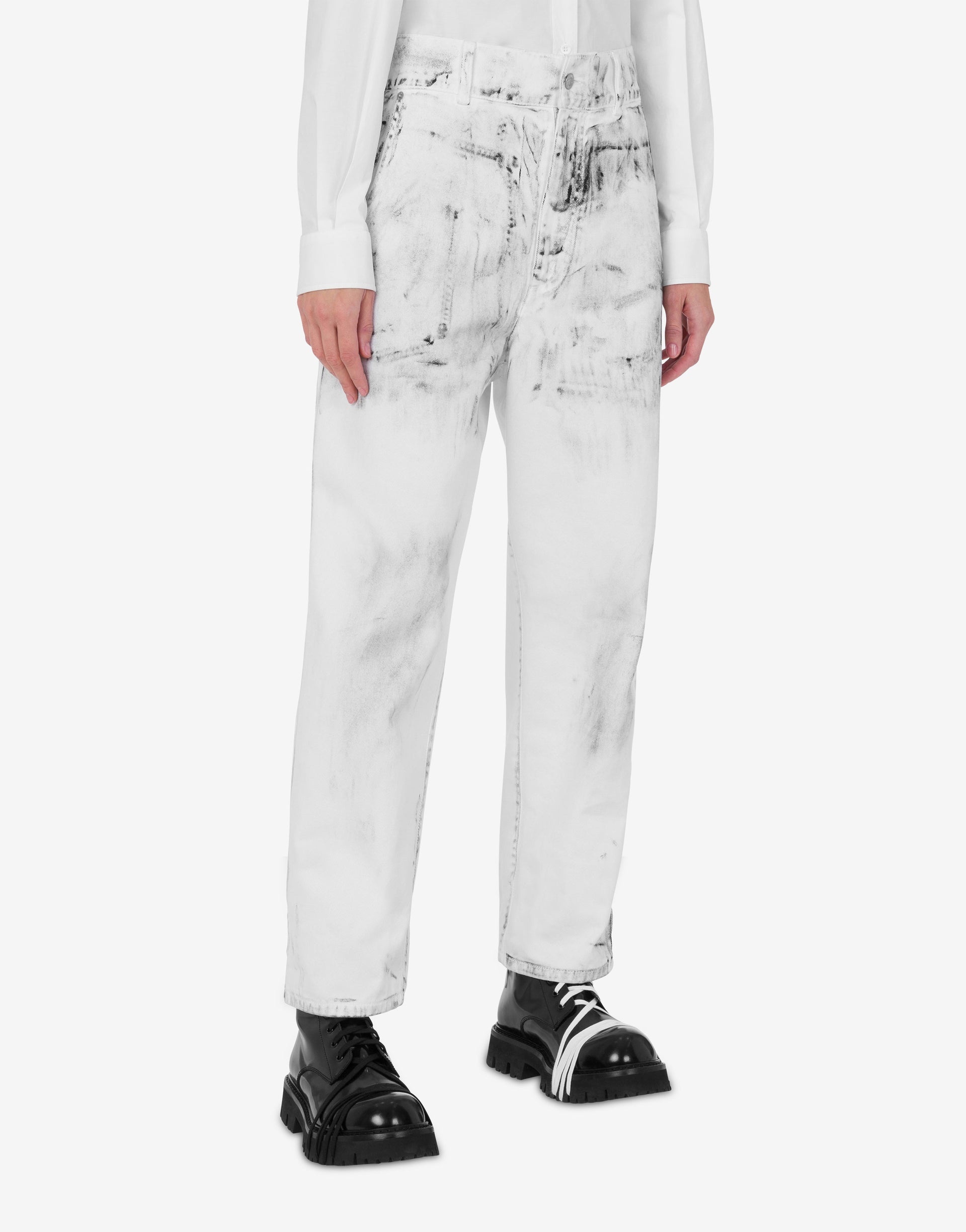 COTTON BULL PANTS WITH CONTRASTING SHADES. THE BACK IS PERSONALIZED WITH AN ARCHIVE LOGO LAUREL CROWN PATCH. PRODUCT DETAILS RELAXED FIT - PATCH WITH LOGO PRINT WITH LAUREL CROWN - TWO FRONT POCKETS - BELT LOOPS - TWO BACK POCKETS - FRONT COVERED ZIP AND BUTTON CLOSURE FABRIC: 100% COTTON SKU: AEF251D J031504211001 FITTING & DIMENSIONS - MODEL HEIGHT: 180 CM - MODEL BUST: 80 CM - MODEL WAIST: 60 CM - MODEL HIPS: 89 CM - MODEL SIZE: 40