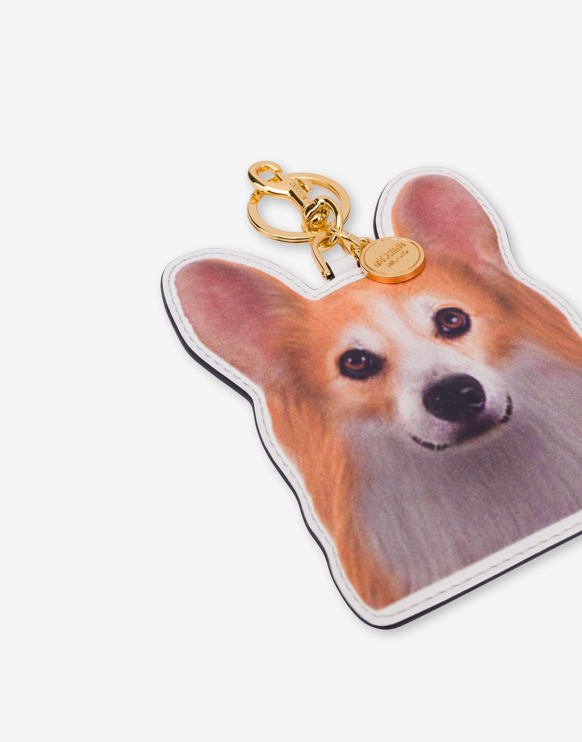 THE FALL/WINTER 2025 PRE-COLLECTION FEATURES THE CORGI DOG PRINT KEYCHAIN. WITH A BRISE RING AND SNAP HOOK, IT CAN ALSO BE USED AS A CHARM. PRODUCT DETAILS - BRISE RING, SNAP HOOK AND SMALL GOLD PLATED LOGO CHARM UPPER: 100% CALFSKIN SKU: POLMC5406PP1NOB010A FITTING & DIMENSIONS - DEPTH: 1 CM - WIDTH: 11 CM - HEIGHT: 13.5 CM