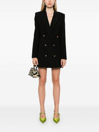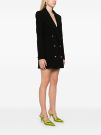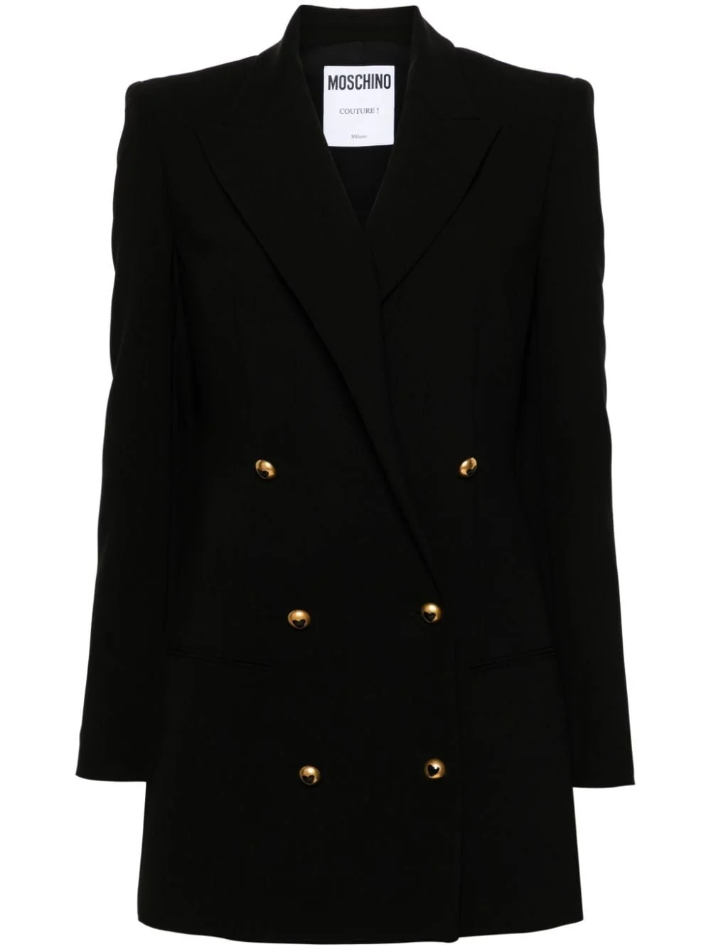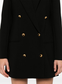 double-breasted mini dress Highlights - Black - Textured finish - Double-breasted button fastening - V-neck - Peak lapels - Shoulder pads - Long sleeves - Two side jetted pockets - Straight hem Imported Composition Outer: Polyester 88%, Spandex/Elastane 12% Lining: Acetate 83%, Silk 17% SIZE & FIT Model measurements Height 5 ft 10 in(1.77 m) Bust/Chest 33.07 in(84 cm) Hips 34.64 in(88 cm) Waist 23.22 in(59 cm) FittingInformation Designed for a slim fit that sits just away from the body offering a close yet comfortable fit The internal shoulder pads offer a structured shape Made from a midweight fabric