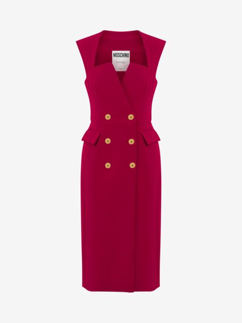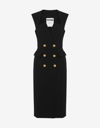 STRETCH CRÊPE ROBE MANTEAU MIDI DRESS WITH GOLD-PLATED BRANDED BUTTONS. SLIM FIT SHAPED NECKLINE SLEEVELESS TWO SIDE POCKETS DOUBLE-BREASTED FASTENING WITH BUTTONS LINED FABRIC: 12% ELASTAN, 88% POLYESTER LINING: 60% CELLULOSE ACETATE, 40% VISCOSE CODE: AEF242E 040755240555