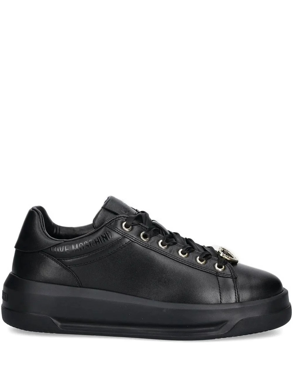 embellished lace-up sneakers Highlights - Black - Leather upper - Heart embellishment - Lace-up fastening - Rubber outsole Imported Composition Outer: Calf Leather 100% Lining: Calf Leather 100%, Fabric 100%, Polyurethane 100% Sole: Rubber 100%