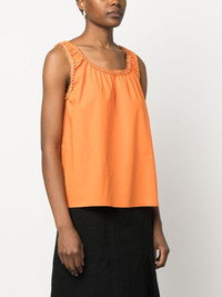 embellished-trim tank top Highlights - Carrot orange - Stretch-cotton - Poplin texture - Ruffled trim - U-neck - Wide shoulder straps - Sleeveless - Straight hem Imported Composition Cotton 95%, Spandex/Elastane 5% SIZE & FIT Model measurements Height 5 ft 11 in(1.8 m) Bust/Chest 31.49 in(80 cm) Hips 36.61 in(93 cm) Waist 24.4 in(62 cm) FittingInformation Designed to be unstructured, offering a loose fit throughout Made from a lightweight stretch fabric, this piece offers elasticity and flexibility when worn This piece fits true to size – take your usual size Washing instructions Machine Wash