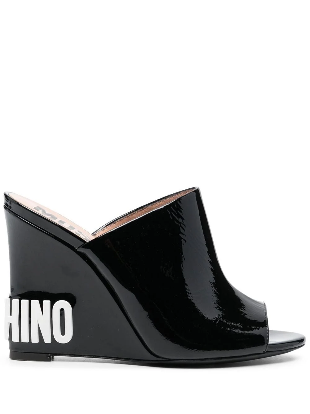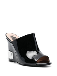 110mm embossed-logo wedge sandals Highlights - Black - Calf leather - Embossed logo to the rear - Open toe - High wedge heel Made in Italy Composition Outer: Calf Leather 100% Lining: Calf Leather 100% Sole: Calf Leather 100% SIZE & FIT Measurement HEEL 4.33 in(11 cm)