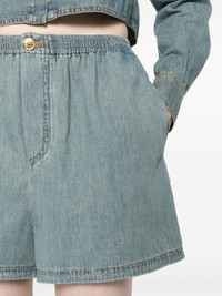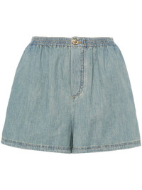 faded-denim shorts Highlights - Cerulean blue - Cotton - Washed denim - Faded effect - Contrast stitching - Decorative embossed gold-tone button detailing - Two side inset pockets - Thigh-length - Elasticated waistband Made in Italy Composition Cotton 100% SIZE & FIT Model measurements Height 5 ft 9 in(1.75 m) Bust/Chest 34.64 in(88 cm) Hips 36.61 in(93 cm) Waist 26.37 in(67 cm) FittingInformation Designed for a loose fit, offering comfort and movement when worn Made from a midweight non-stretch fabric This piece fits true to size – take your usual size
