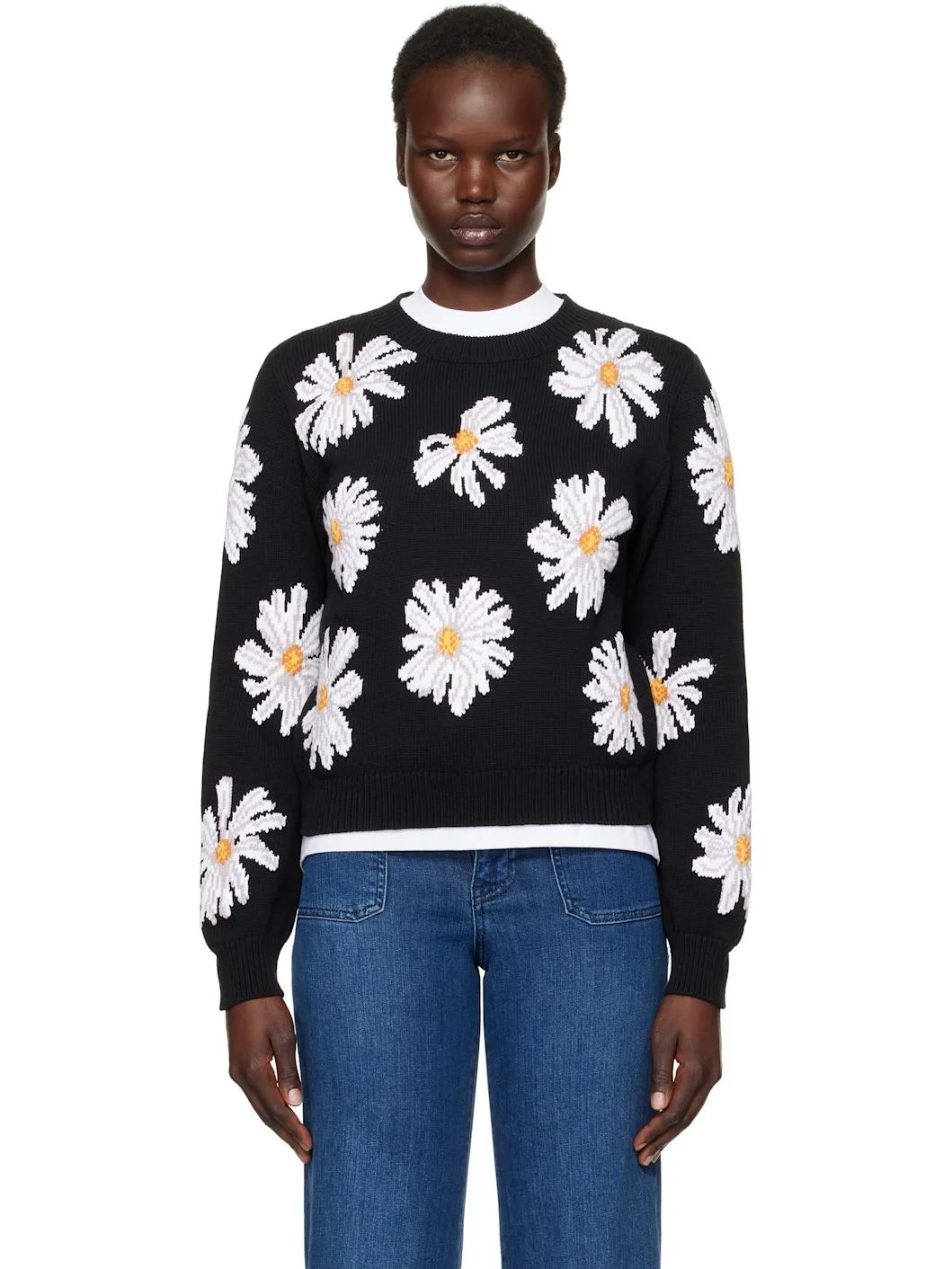 Knit organic cotton- and nylon-blend sweater. Intarsia floral pattern throughout. · Rib-knit crewneck, hem, and cuffs · Leather logo patch at back Supplier color: Multi black 62% organic cotton, 38% polyamide. Made in Italy 251720F096001