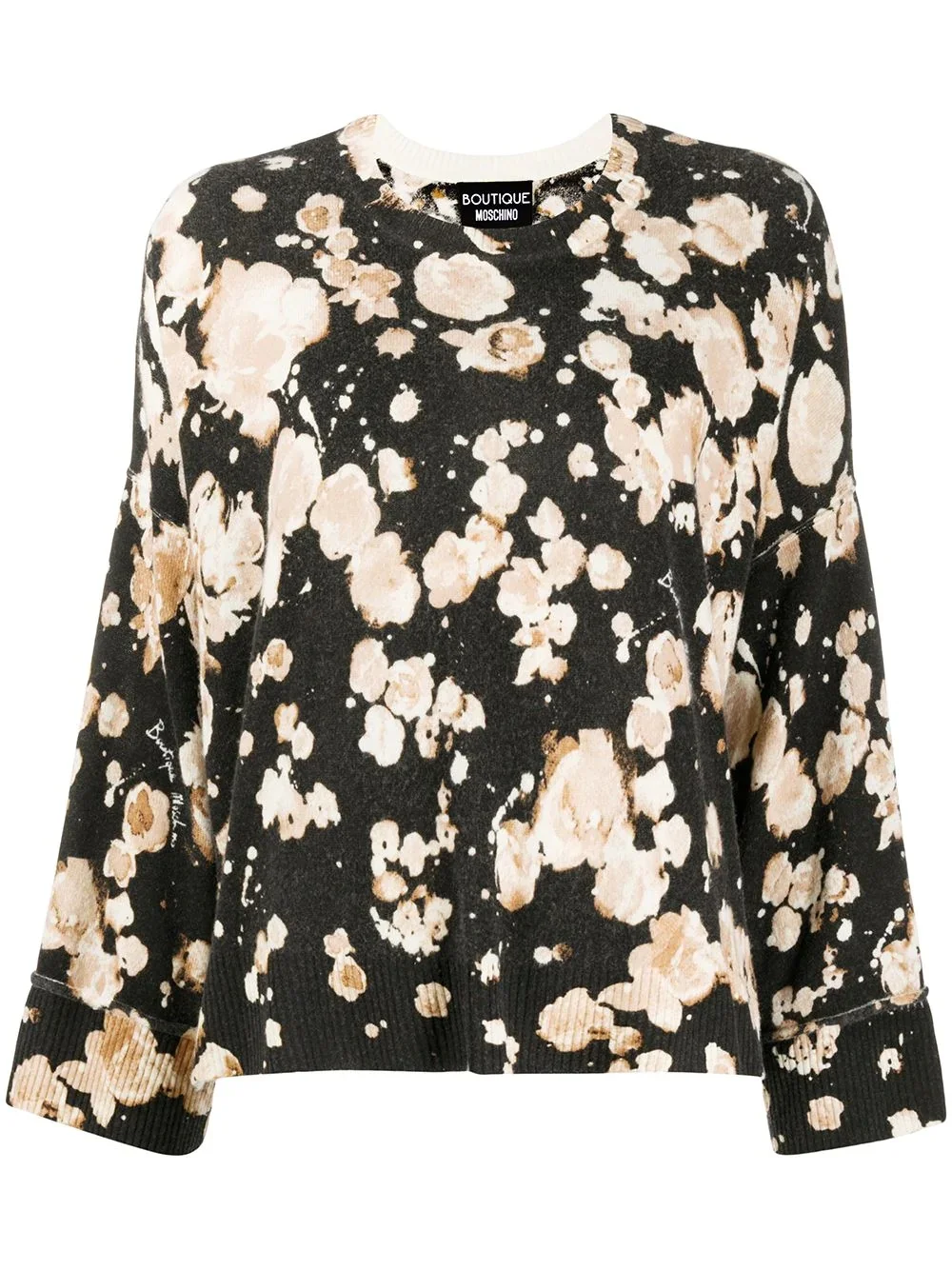 floral long-sleeve jumper Highlights - Black/brown - Cashmere-wool blend - Floral print - Round neck - Long sleeves Imported Composition Wool 90%, Cashmere 10% SIZE & FIT Model measurements Height 5 ft 9 in(1.76 m) Bust/Chest 31.88 in(81 cm) Hips 37 in(94 cm) Waist 25.19 in(64 cm) FittingInformation This piece fits true to size. We recommend you get your regular size Cut for a loose fit Made with a mid-weight fabric Washing instructions Hand Wash
