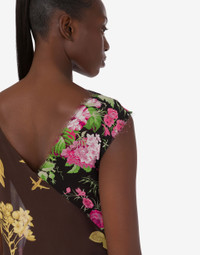 THE FALL/WINTER 2025 COLLECTION FEATURES THE SILK GEORGETTE LONGUETTE DRESS WITH FLORAL PATTERN PRINT MADE IN COLLABORATION WITH BRITISH TEXTILE HOUSE SANDERSON. SMALL BLACK RIBBONS TIE IN A BOW AT THE SIDE. PRODUCT DETAILS REGULAR FIT - THE GARMENT HAS UNDERGONE SPECIAL TREATMENT. THE SHADES OF COLOR GIVE THE DRESS A UNIQUE LOOK AND SHOULD NOT BE CONSIDERED DEFECTS - STRAIGHT NECKLINE - SLEEVELESS - V-NECK ON THE BACK FABRIC: 100% SILK SKU: AEF252D A045954584888