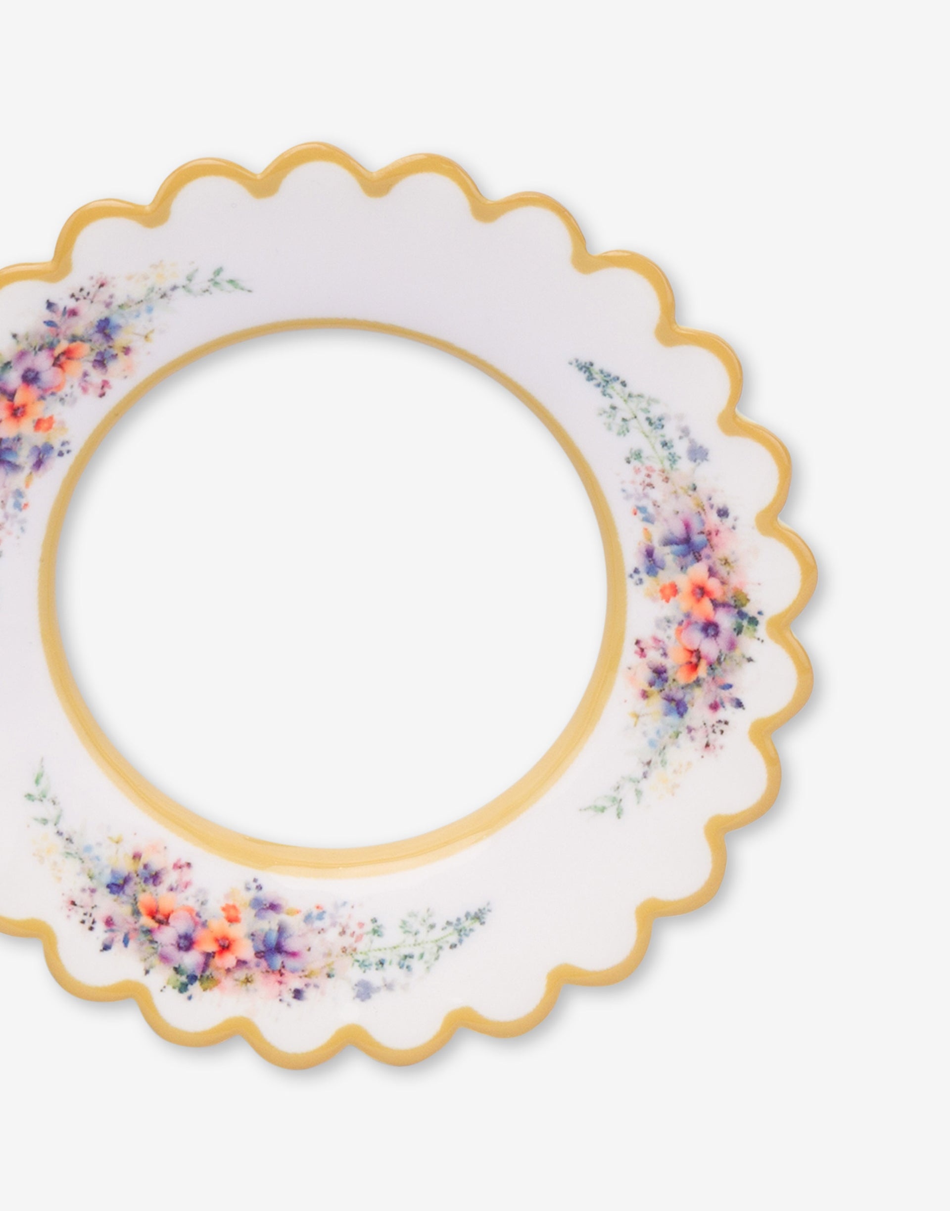 THE FALL/WINTER 2025 PRE-COLLECTION FEATURES A METAL BRACELET INSPIRED BY A SMALL TEA PLATE, WITH A FLORAL PRINT AND SCALLOPED OUTER EDGE. PRODUCT DETAILS - GOLD DETAIL PRINT - RIGID BRACELET FABRIC: 100% POLYESTER SKU: AEF25271A910284011888