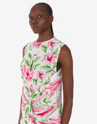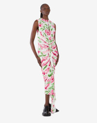 THE FALL/WINTER 2025 COLLECTION FEATURES THE CREPE DE CHINE LONGUETTE DRESS WITH AN ALL OVER FLOWER PRINT MADE IN COLLABORATION WITH BRITISH TEXTILE HOUSE SANDERSON. PRODUCT DETAILS REGULAR FIT - V-NECK WITH BUTTON CLOSURE - RUCHING ON THE FRONT - SLEEVELESS - SPLIT ON THE FRONT FABRIC: 100% VISCOSE SKU: AEF252D J041554562001