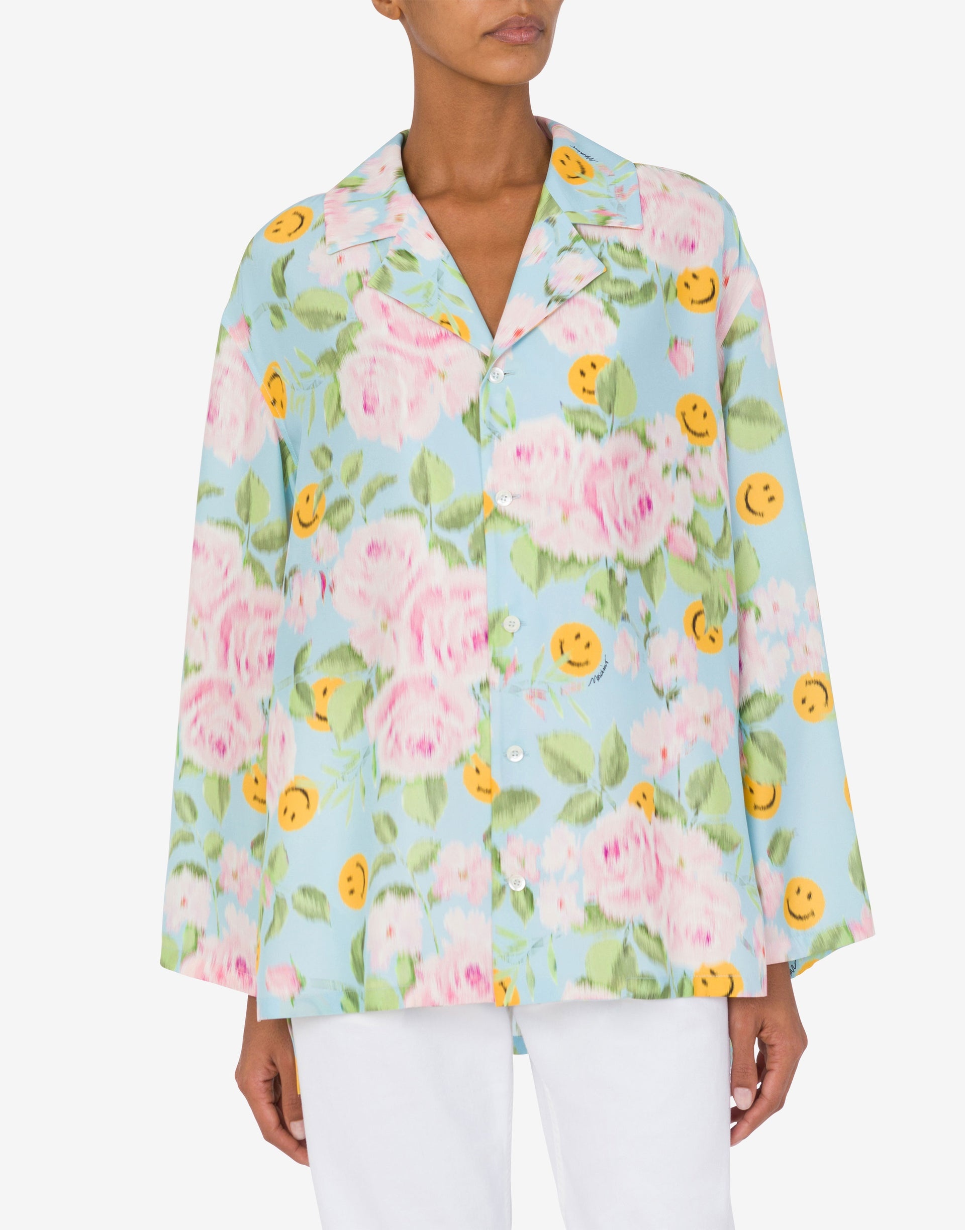 MATTE SILK SATIN SHIRT WITH AN ALL-OVER ROSE AND SMILEY® PRINT. THE PAJAMA-INSPIRED DESIGN IS FLUID AND RELAXED. PRODUCT DETAILS RELAXED FIT - CREATED IN COLLABORATION WITH SMILEY® - NOTCHED LAPEL - LONG SLEEVES - FRONT BUTTON CLOSURE FABRIC: 100% SILK SKU: AEF251D A022704511293 FITTING & DIMENSIONS - MODEL HEIGHT: 180 CM - MODEL BUST: 80 CM - MODEL WAIST: 60 CM - MODEL HIPS: 89 CM - MODEL SIZE: 40