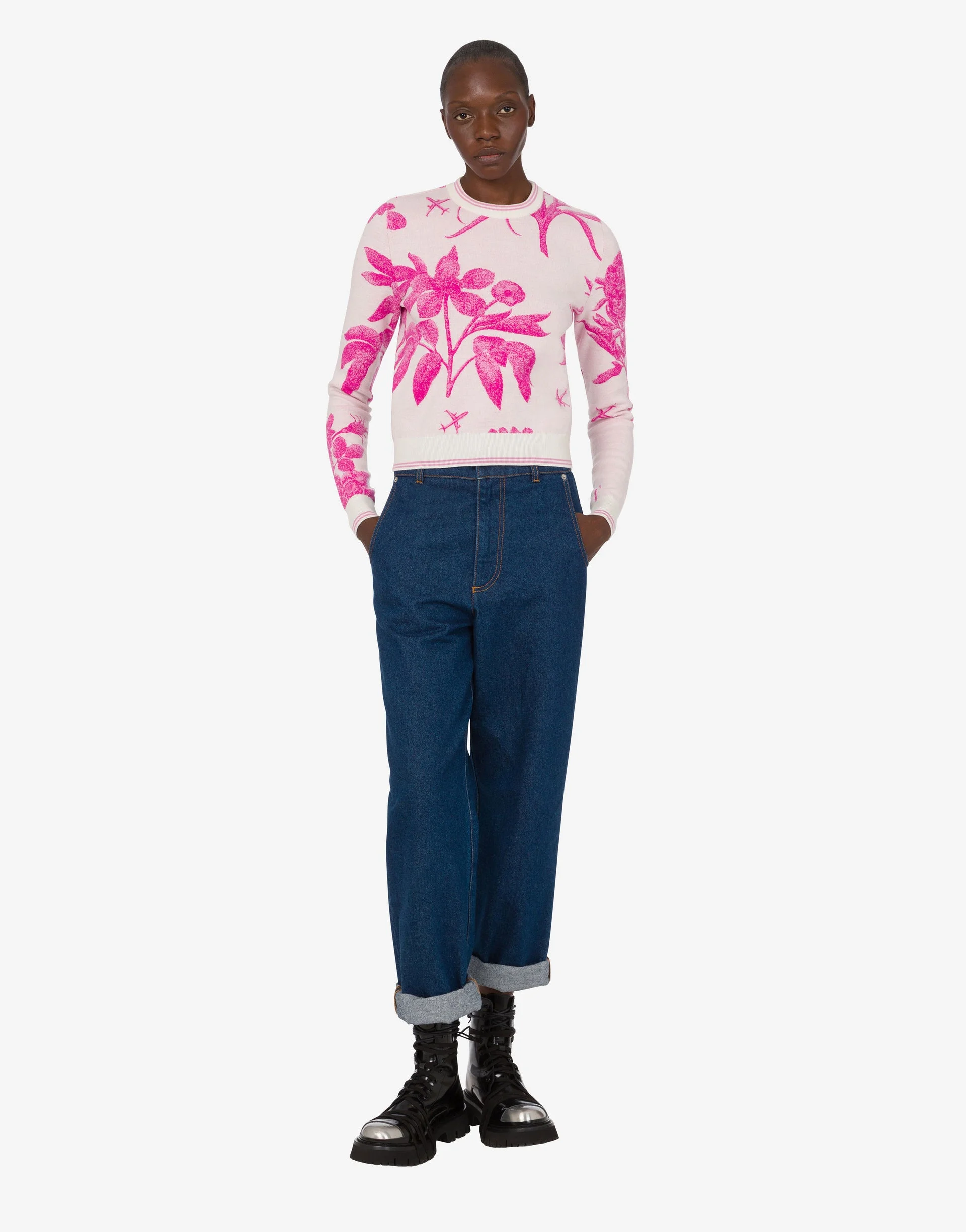 THE FALL/WINTER 2025 COLLECTION FEATURES THE STRETCH WOOL PULLOVER WITH JACQUARD FLOWER EMBROIDERY. PRODUCT DETAILS REGULAR FIT - STRIPED DETAILS WITH RIBBED WORKMANSHIP - NECKLINE FABRIC: 100% PURE WOOL SKU: AEF252D A093154101002