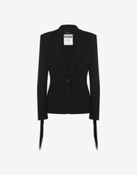 STRETCH CRÊPE SINGLE-BREASTED JACKET WITH MATCHING FRINGES ON THE SLEEVES. SLIM FIT PEAK LAPELS TWO FRONT POCKETS FRONT BUTTON FASTENING PADDED SHOULDERS LINED FABRIC: 12% ELASTAN, 88% POLYESTER CODE: AEF242E 052055240555