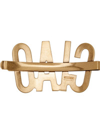 Brooch in antiqued gold-tone brass. · Text at face · Clip fastening · H1.5" x W2.75" Supplier color: Old looking gold Brass. Made in Italy 251720F021000