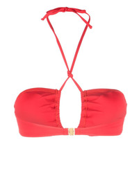 halterneck bikini top Highlights - Red - Stretch-design - Gathered detailing - Non-wired - Halterneck tie fastening - Rear clasp fastening - Be mindful to try on swimwear over your own garments. Made in Italy Composition Lining: Polyamide 87%, Elastane 13% Outer: Polyamide 87%, Elastane 13% Washing instructions Hand Wash