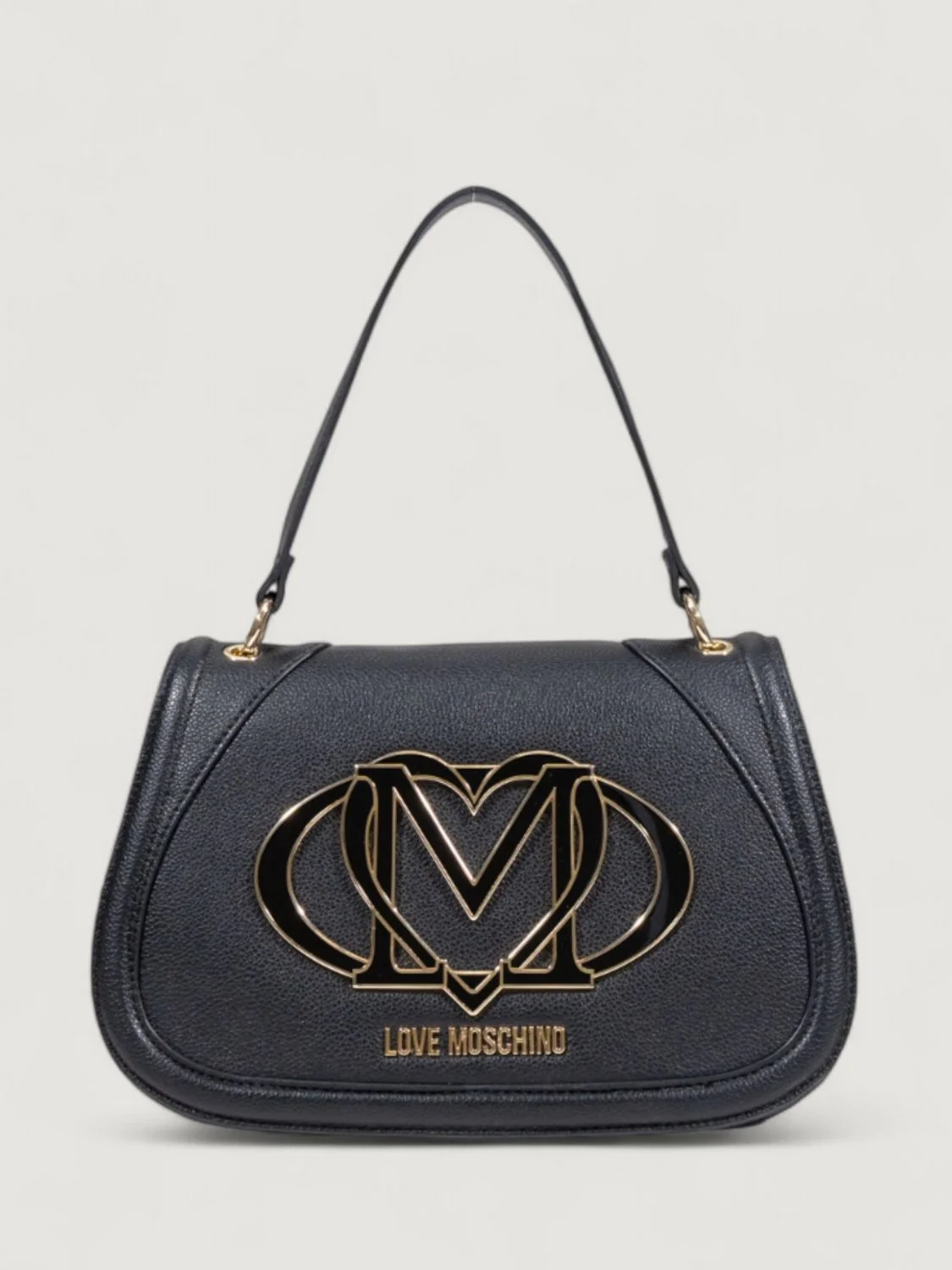 DESCRIPTION - Style: Sporty - Logo: Metallic - Model: Shoulder - Closure: With button flap - Handle: Top - Shoulder strap: Adjustable and removable - Shape: Round - Materials: Synthetic leather - Pattern: Logo DETAILS AND CARE Composition PU 100 SIZE AND FIT Sizes Width : 28 cm Height: 18 cm Depth: 10 cm Designer code: JC4004PP1NLG0 000 Giglio Code: H45437 Designer: Love Moschino Collection: Love Moschino Woman Category: Bags Love Moschino