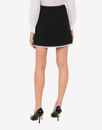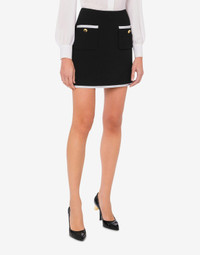 MINISKIRT IN VISCOSE CRÊPE AND STRETCH WOOL WITH GOLD-PLATED BUTTONS WITH COATED HEART AND PASSEMENTERIE EMBROIDERED WITH ZIG-ZAG TOPSTITCHING. REGULAR FIT MID-RISE TWO BUTTONED POCKETS ON THE FRONT ZIP FASTENING AT THE SIDE LINED FABRIC: 2% ELASTAN, 40% PURE WOOL, 58% VISCOSE CODE: AEF242E 012155170555