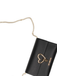heart-detail cross body bag Highlights - Black - Heart detail - Chain-link shoulder strap - Gold-tone hardware Imported Composition Outer: Polyurethane 100% SIZE & FIT Measurement DEPTH 2.16 in(5.5 cm) HEIGHT 5.11 in(13 cm) WIDTH 8.66 in(22 cm) Washing instructions Do Not Wash/Do Not Dry Clean