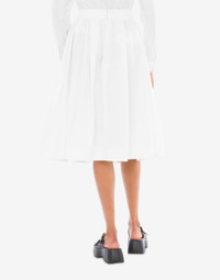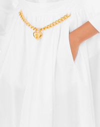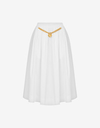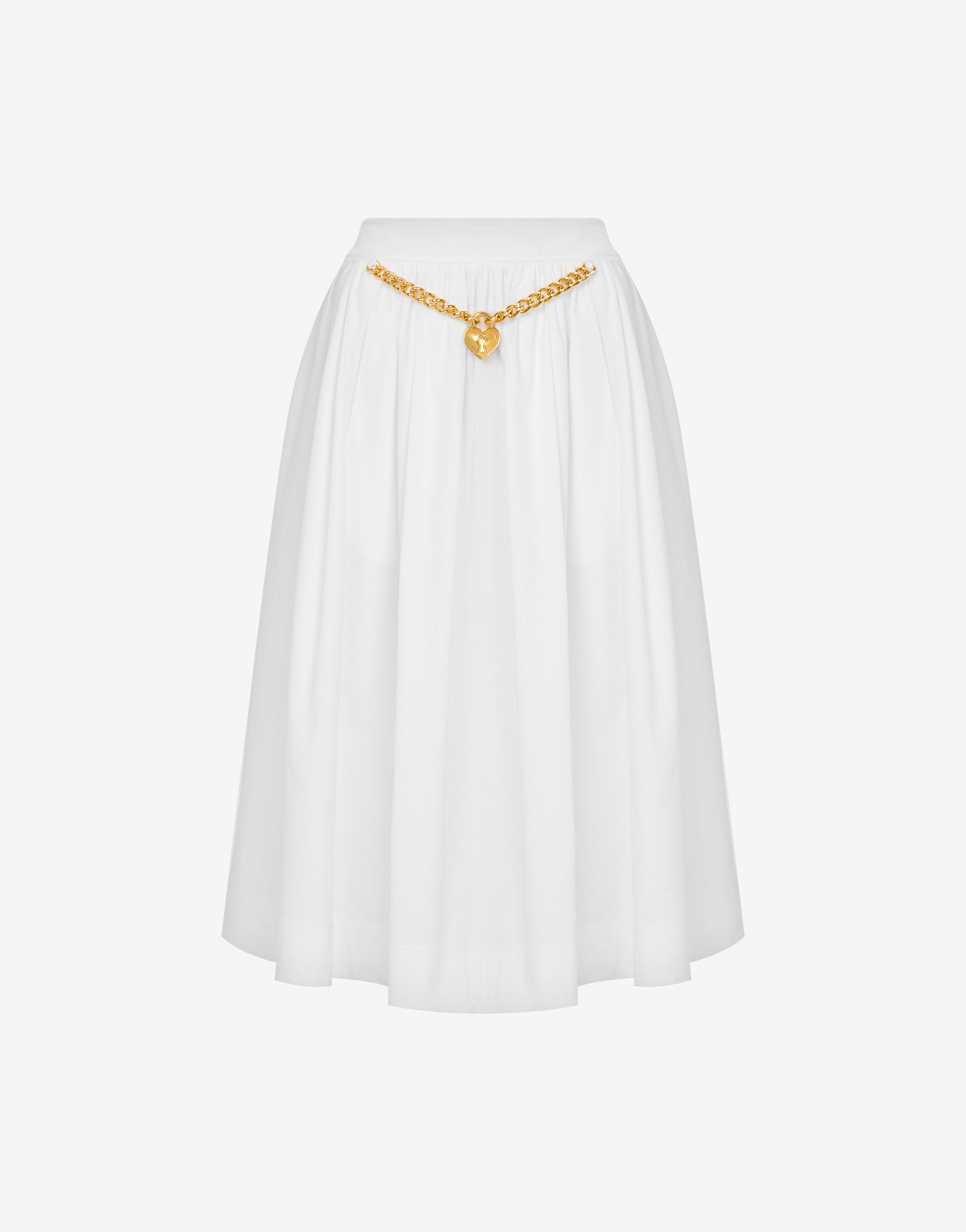 Stretch cotton cloth A-line skirt with decorative chain and gold-electroplated heart-shaped padlock charm. - A-line Fit - Metal chain and heart charm - High waist - Flared fit - Two front pockets - Zip fastening on the back Fabric:97% Cotton, 3% Elastan Code: AEF241E 011405300001 FIT - A-line Fit - Model bust size : 82 - Model height : 1.78 cm - Model Hips : 88 cm - Model size : 40 - Model waist : 60 cm