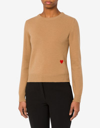 EXTRAFINE WOOL AND CASHMERE JUMPER WITH SMALL RED HEART EMBROIDERY. CREW NECK HEART EMBROIDERY ON THE FRONT FABRIC: 30% CASHMERE, 70% PURE WOOL CODE: AEF242E 092155090087