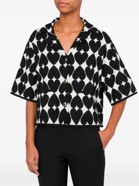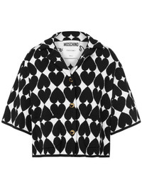 heart-motif knitted cotton shirt Highlights - Black/white - Cotton - Intarsia knit - Heart motif - Logo print to the rear - Notched collar - Front button fastening - Drop shoulder - Half-length sleeves - Straight hem Made in Italy Composition Cotton 100%