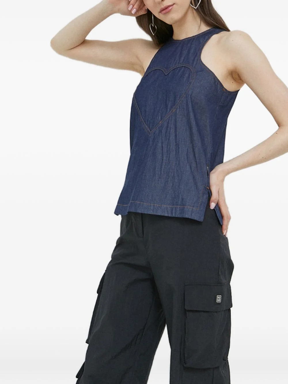 heart-motif top Highlights - Blue - Heart detail - Zip fastening - Round neck - Sleeveless - Topstitching Imported Composition Cotton 100% Washing instructions Read Manufacturer Guidelines