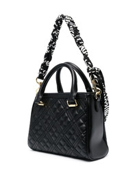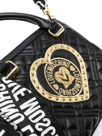 heart-patch quilted tote bag Highlights - Black - Faux leather - Diamond quilting - Heart patch - Gold-tone hardware - Two rolled top handles - Detachable scarf-wrapped top handle - Detachable shoulder strap - Top zip fastening - Main compartment - Internal zip-fastening pocket Imported Composition Outer: Polyurethane 100% SIZE & FIT Model measurements Height 5 ft 11 in(1.8 m) Bust/Chest 31.49 in(80 cm) Hips 36.41 in(92.5 cm) Waist 25.59 in(65 cm)