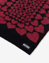 THE FALL/WINTER 2025 COLLECTION FEATURES THE MOHAIR-BLEND SCARF WITH AN ALL OVER HEARTS INLAY WITH A DEGRADE EFFECT. PRODUCT DETAILS - INLAY HEARTS OF DIFFERENT SIZES - SMALL LOGO PATCH AT BOTTOM FABRIC: 48% POLYAMIDE, 46% MOHAIR, 4% WOOL SKU: LSEQ030836D0M3328V007