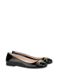 heart plaque ballerina shoes Highlights - Black - Calf leather - Patent finish - Heart motif - Round toe - Branded leather insole - Flat rubber sole Imported Composition Leather 100%