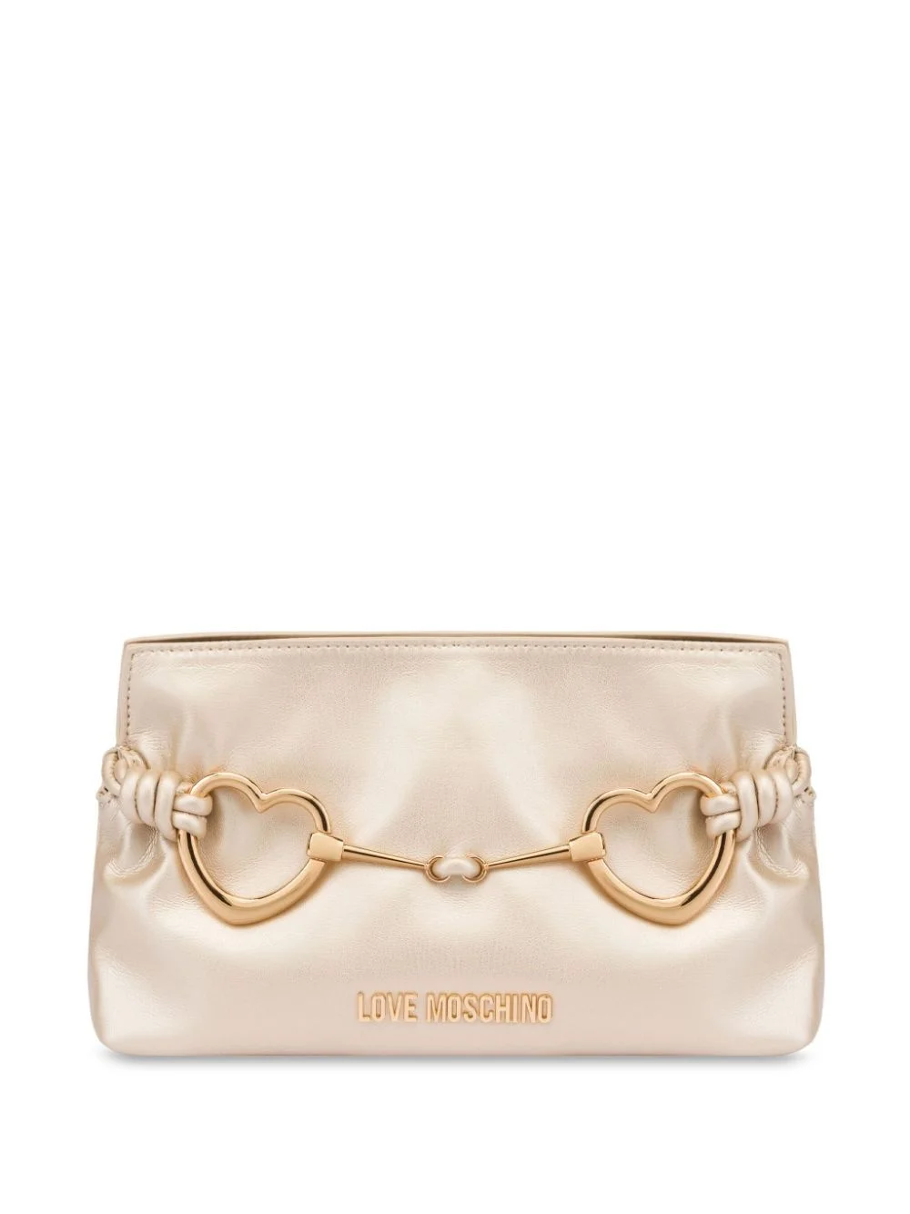 heart-plaque cross body bag Highlights - Light beige - Artificial leather - Horsebit detail - Heart motif - Top zip fastening - Chain-link shoulder strap - Knot detailing - Gold-tone logo lettering - Internal slip pocket - Full lining Imported Composition Outer: Polyurethane 100%