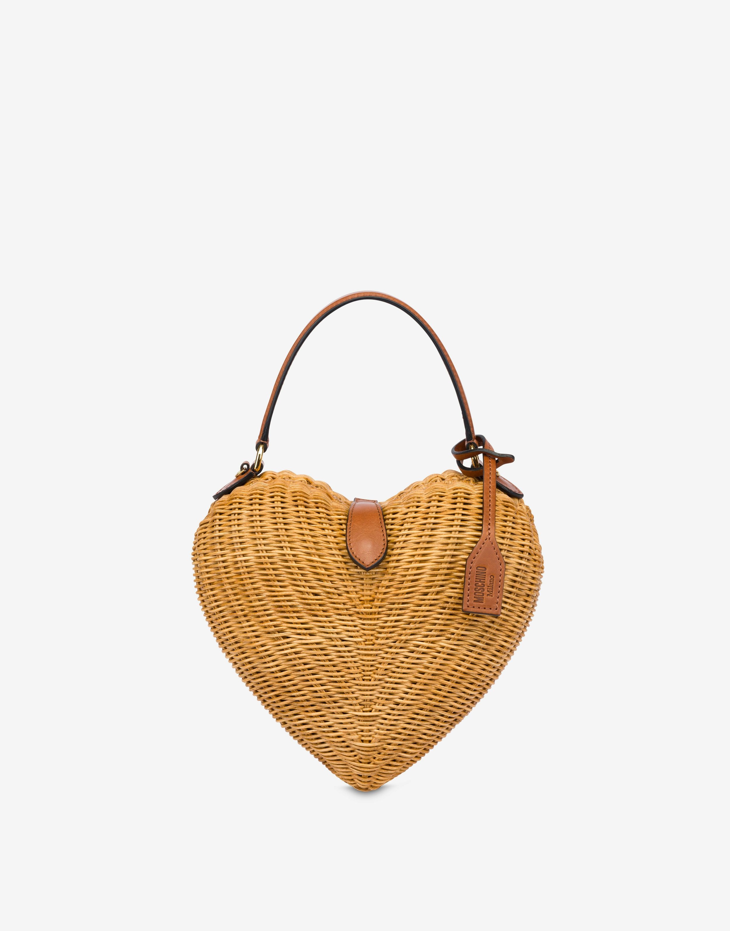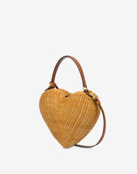 HEART-SHAPED BAG MADE FROM WICKER, A NATURAL PLANT FIBER METICULOUSLY WOVEN TO CREATE A CAPTIVATING PATTERN OF INTERLACING. EXPERTLY COATED WITH A HONEY-COLORED STAIN, THIS BAG ENHANCES THE NATURAL BEAUTY OF THE MATERIAL, ENSURING LASTING PROTECTION OVER WOVEN WICKER SOAKED IN LEATHER COLOR LEATHER DETAILS MULTIPLE CARRY OPTIONS: HAND, SHOULDER, CROSSBODY LEATHER HANDLE ADJUSTABLE AND REMOVABLE STRAP GUSSETED CONSTRUCTION REMOVABLE LOGO ACCESSORY SNAP BUTTON CLOSURE LINED INTERIOR UPPER: 10% GLASS, 90% WOOD CODE: POLMC4138PP1MON110A FIT DEPTH: 12 CM HEIGHT: 24 CM WIDTH: 21 CM