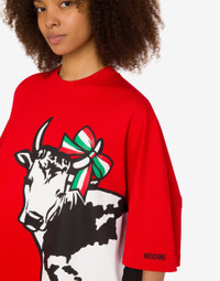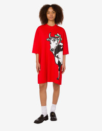 THE FALL/WINTER 2025 PRE-COLLECTION FEATURES THE OVERSIZE FIT HEAVY COTTON DRESS WITH ARCHIVAL MAXI PRINT DEPICTING A COW. PRODUCT DETAILS OVERSIZE FIT - LOGO PRINT ON SLEEVE - NECKLINE - DOWN SHOULDERS - THREE-QUARTER SLEEVES FABRIC: 100% COTTON SKU: AEF252E A040855421115 FITTING & DIMENSIONS - MODEL HEIGHT: 177 CM - MODEL BUST: 81 CM - MODEL WAIST: 63 CM - MODEL HIPS: 92 CM - MODEL SIZE: 40