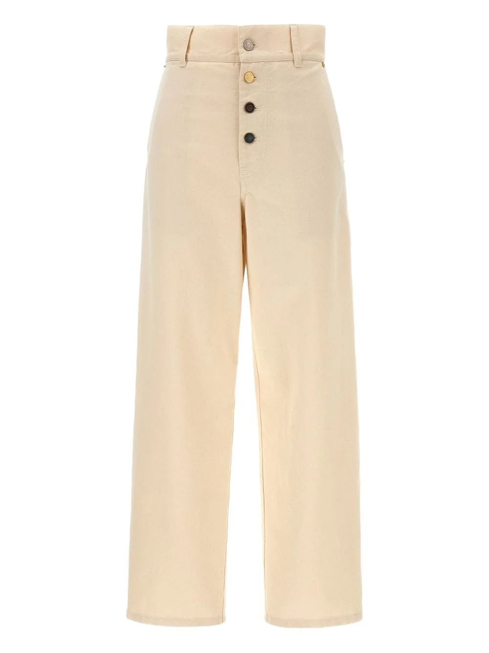 high-rise jeans Highlights - Beige - Front button fastening - Patch pockets at the back - Logo patch - Straight leg design Made in Italy Composition Cotton 100% Washing instructions Read Manufacturer Guidelines