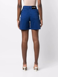 high-waisted chino shorts electric-blue cotton-blend front button fastening two diagonal pockets to the sides two rear patch pockets logo patch to the rear Imported Composition Cotton 97%, Spandex/Elastane 3% SIZE & FIT Model measurements Height 5 ft 10 in(1.77 m) Bust/Chest 34.64 in(88 cm) Hips 35.43 in(90 cm) Waist 24.8 in(63 cm) FittingInformation This piece fits true to size. We recommend you get your regular size Designed to be fitted at the waist and hips, loose over the leg Made with a mid-weight stretch fabric Washing instructions Machine Wash
