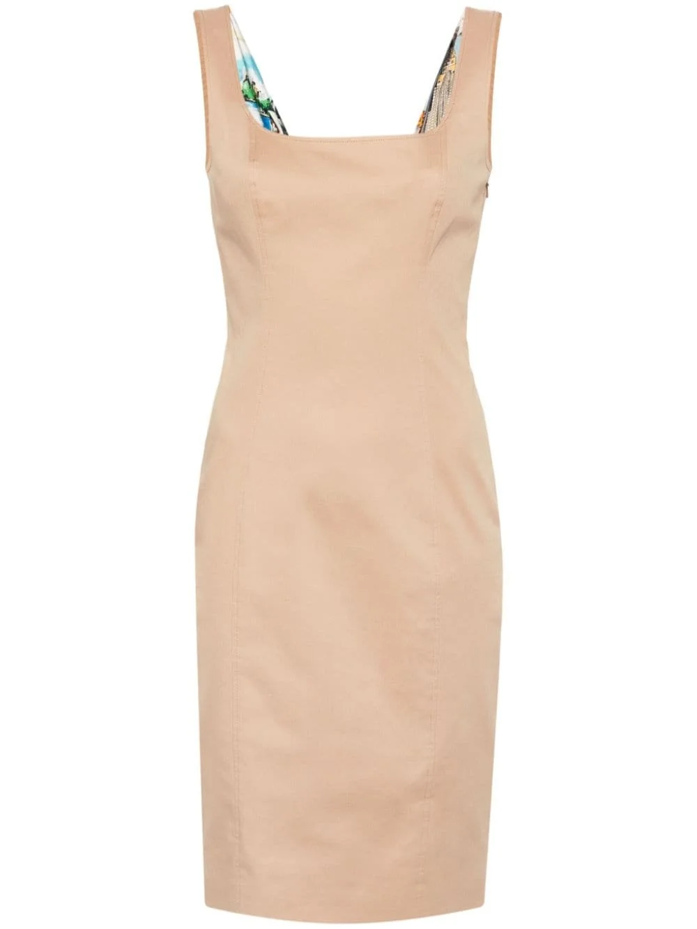 horoscope-panelled mini dress Highlights - Beige - Stretch-cotton - Twill weave - Panelled design - Scoop neck - Sleeveless - Open back - Self-tie horoscope-print satin panel to the rear - Full lining - Straight hem - Thigh-length - Concealed side zip fastening Made in Italy Composition Outer: Cotton 97%, Elastane 3% Lining: Polyester 100%, Acetate 83%, Silk 17% SIZE & FIT Model measurements Height 5 ft 10 in(1.77 m) Bust/Chest 32.28 in(82 cm) Hips 35.03 in(89 cm) Waist 25.19 in(64 cm) FittingInformation Designed for a close fit throughout Made from a midweight stretch fabric, this piece offers elasticity and flexibility when worn This piece fits true to size – take your usual size