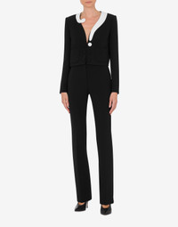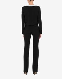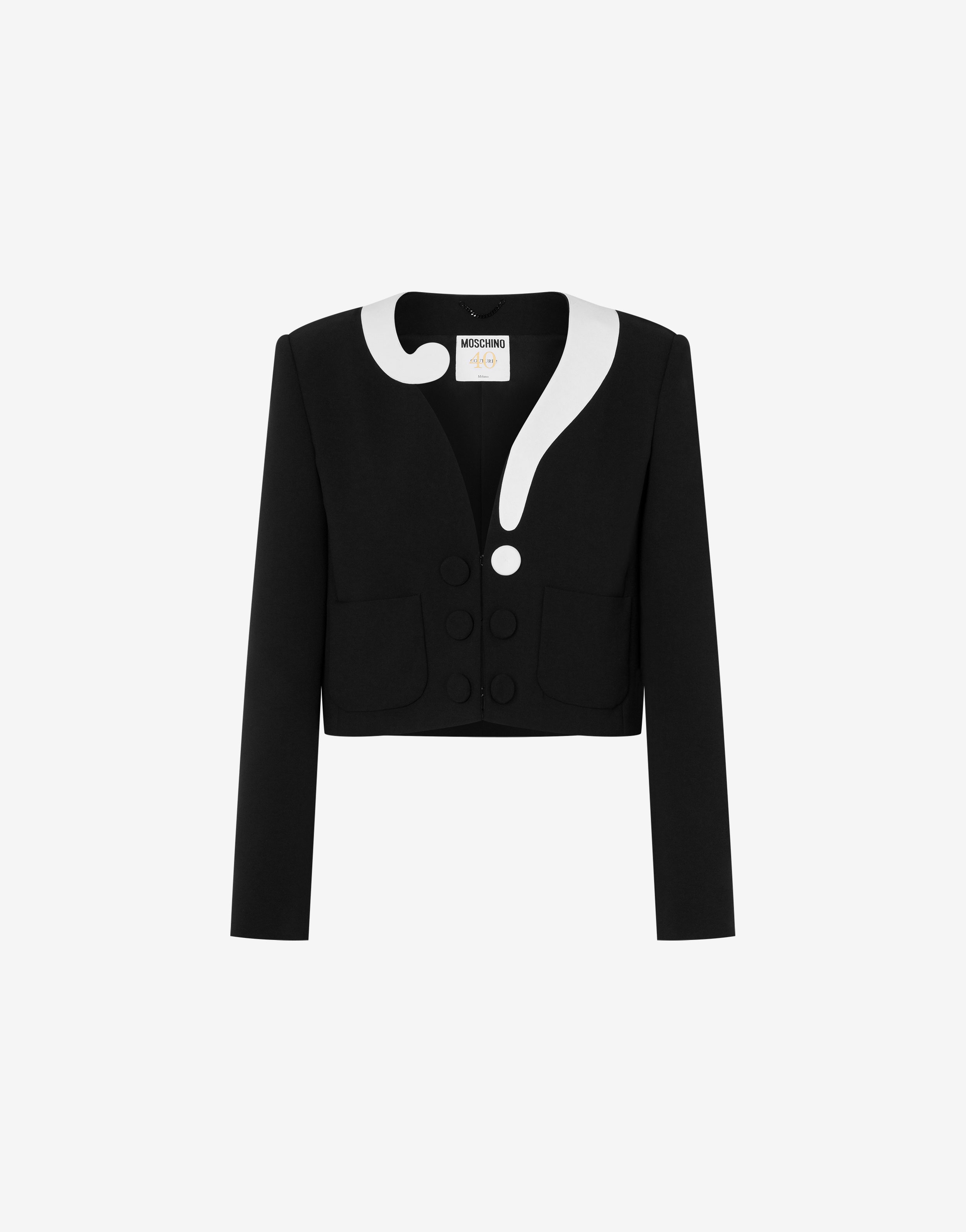 Stretch crêpe cropped jacket with Question Mark patch on the V-neck. - Cropped Fit - Contrasting question mark patch - Two front pockets - Concealed hook-and-eye fastening on the front - Decorative buttons - Buttoned sleeve hems - Padded shoulders - Lined Fabric:12% Elastan, 88% Polyester Code: AEF241D 051604241555 FIT - Cropped Fit - Model bust size : 82 - Model height : 1.78 cm - Model Hips : 88 cm - Model size : 40 - Model waist : 60 cm