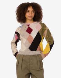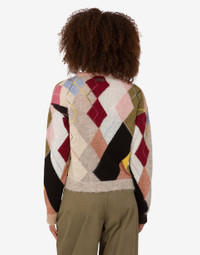 THE FALL/WINTER 2025 PRE-COLLECTION FEATURES THE GAUZY MOHAIR PULLOVER WITH DIAMOND PATTERN AND SMALL LEATHER LOGO LABEL APPLIED ON THE BACK. PRODUCT DETAILS REGULAR FIT - INLAYS WITH LUREX THREADS - NECKLINE - SHOULDERS DROPPED FABRIC: 35% MOHAIR, 35% ALPACA, 30% POLYAMIDE SKU: AEF252E A090555061888 FITTING & DIMENSIONS - MODEL HEIGHT: 177 CM - MODEL BUST: 81 CM - MODEL WAIST: 63 CM - MODEL HIPS: 92 CM - MODEL SIZE: 40