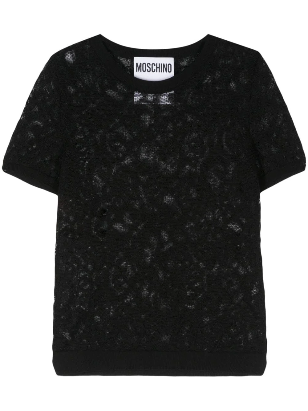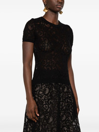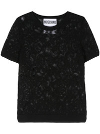 jacquard knitted top Highlights - Black - Cotton - Knitted construction - Patterned jacquard - Crew neck - Short sleeves - Ribbed cuffs and hem - Unlined Made in Italy Composition Cotton 100%, Polyester 100% SIZE & FIT Model measurements Height 5 ft 10 in(1.77 m) Bust/Chest 32.28 in(82 cm) Hips 35.03 in(89 cm) Waist 25.19 in(64 cm) FittingInformation Designed for a slim fit that sits just away from the body offering a close yet comfortable fit Made with a lightweight knit, this piece offers some stretch This piece fits true to size – take your usual size Washing instructions Hand Wash
